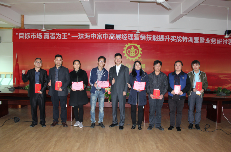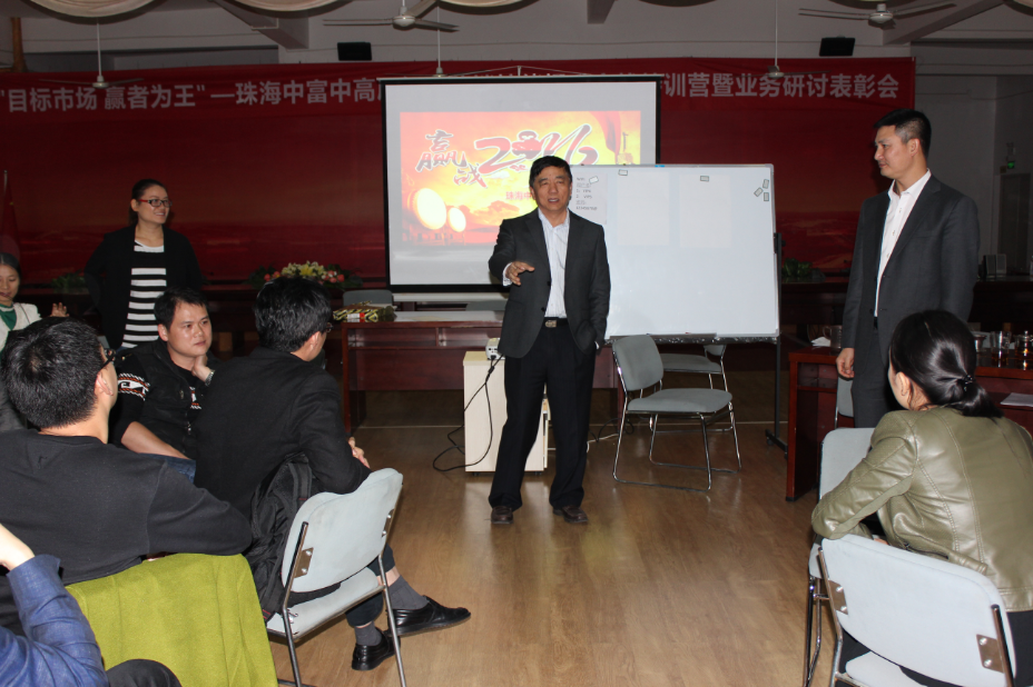 2015年12月27日,公司利用開設(shè)“珠海中富‘目標(biāo)市場(chǎng)、贏者為王’中高層營(yíng)銷技能提升特訓(xùn)營(yíng)”的機(jī)會(huì),再次在支持中心舉辦了“2016年業(yè)務(wù)研討表彰會(huì)”,會(huì)議由人力資源部主持,董事長(zhǎng)兼總經(jīng)理宋建明先生、總經(jīng)理特別助理吳逢彬先生、各職能部門總監(jiān)、各區(qū)總監(jiān)、各工廠廠長(zhǎng)、各區(qū)財(cái)務(wù)總監(jiān)、優(yōu)秀員工代表、有獎(jiǎng)?wù)魑墨@獎(jiǎng)?wù)叽砉?0人參加了會(huì)議;本次會(huì)議旨在明確公司2016年業(yè)務(wù)目標(biāo)、分享實(shí)現(xiàn)目標(biāo)的推進(jìn)方案、落實(shí)廠長(zhǎng)對(duì)工廠業(yè)務(wù)的責(zé)任、樹標(biāo)桿立榜樣、共商未來關(guān)鍵改善行動(dòng)措施。會(huì)議主要有如下內(nèi)容: